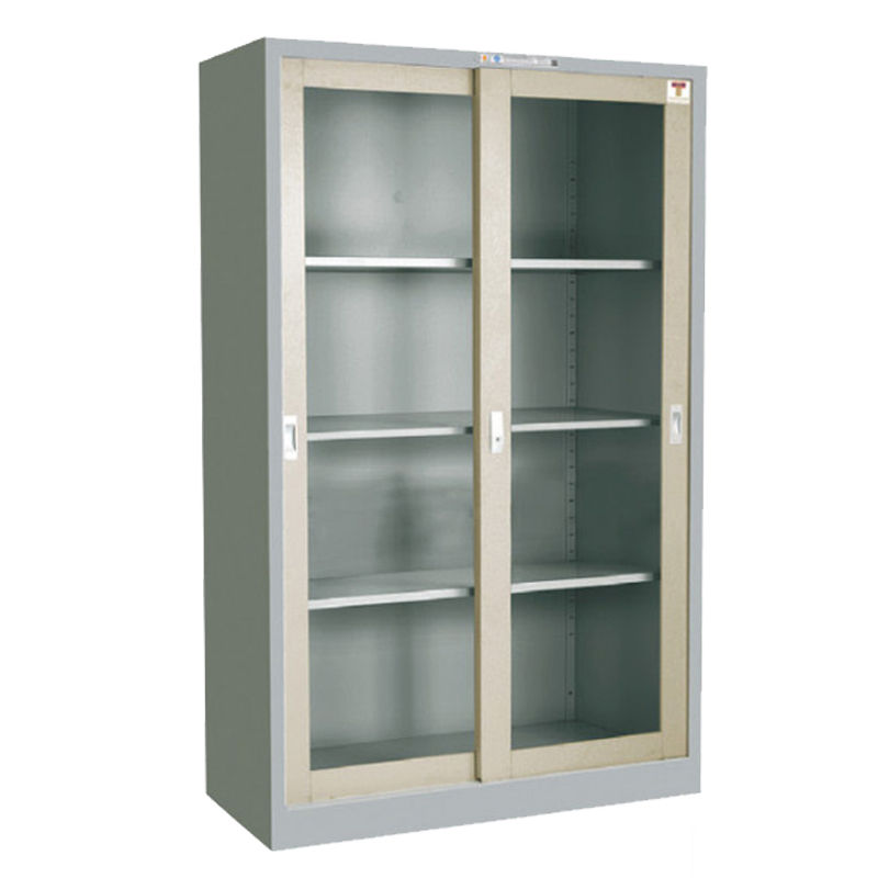 ตู้บานเลื่อนสูงกระจก 4 ฟุต (มอก.) ไทโย SD-724TG สีGXเทา