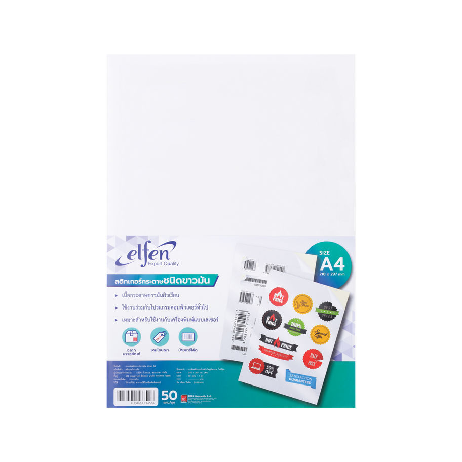 สติกเกอร์ขาวมัน A4 210ไมครอน 50แผ่น/แพ็ค เอลเฟ่น