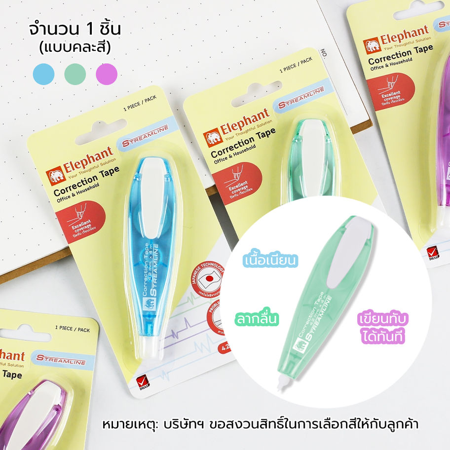 เทปลบคำผิด 4.2มม.x4ม. คละสี ตราช้าง Streamline